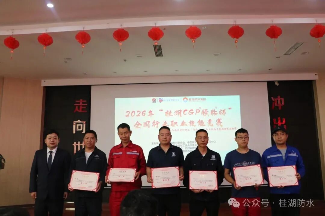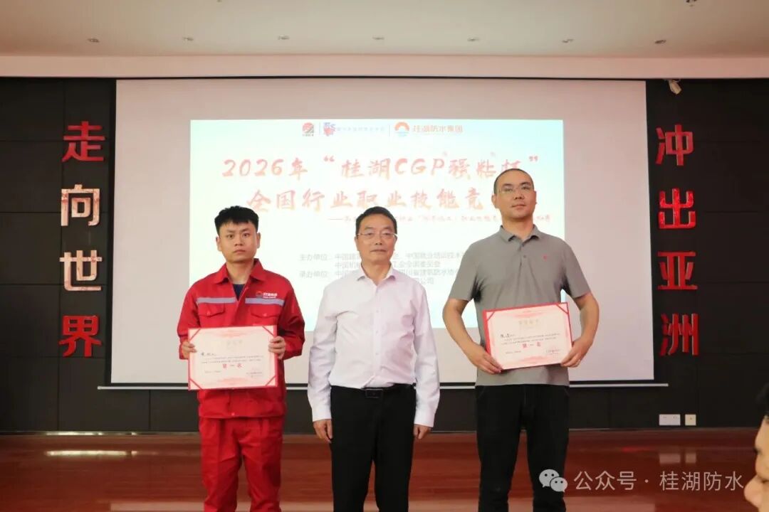 经过一天激烈的角逐,每一位选手都展现了自己独到的防水施工工艺。大家比手艺、拼细心、赛质量,赛场上热火朝天,充分展现了防水工人的真本事。最终,桂湖参赛选手分别取得了优异的成绩:改性沥青防水卷材组斩获冠军、亚军,高分子防水卷材组荣获亚军、季军。